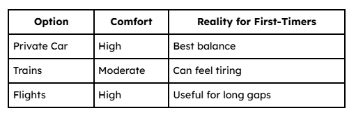 Private Car vs Trains vs Flights