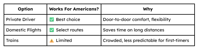 Private Driver vs Trains vs Domestic Flights